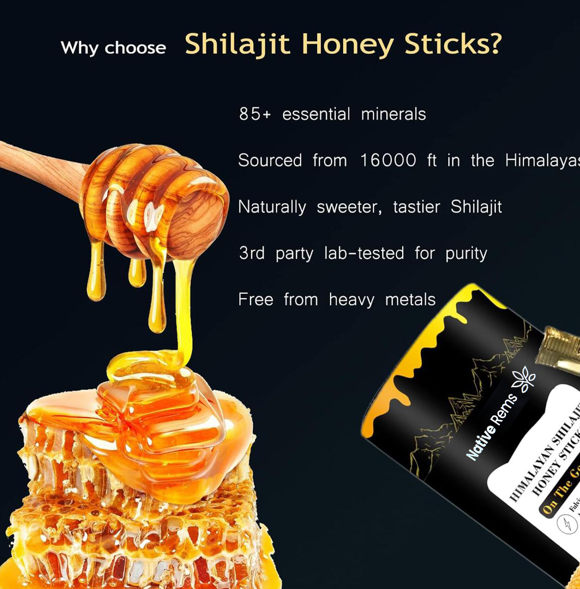 Native Rems packs contain 30 sticks of Pure shilajit honey. All orders include our FREE metal measuring spoon.