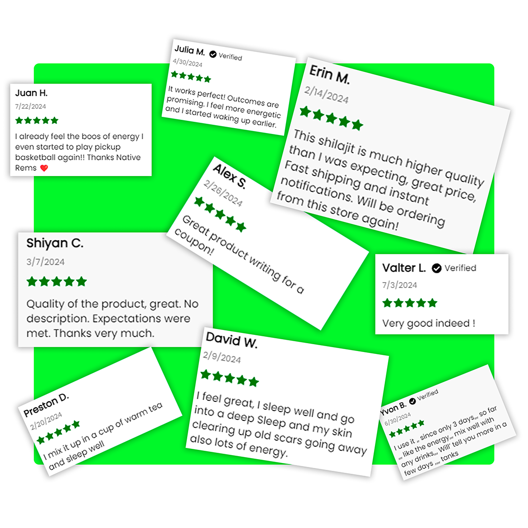 We are so confident in the benefits of Native Rems' Shilajit Resin-improving your energy and overall well-being -that we provide a 100% money-back guarantee, no questions asked*.
